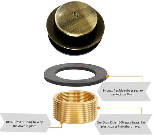Maui - Tip Toe Style Bathtub Tub Drain Assembly Conversion Kit, All Brass Construction